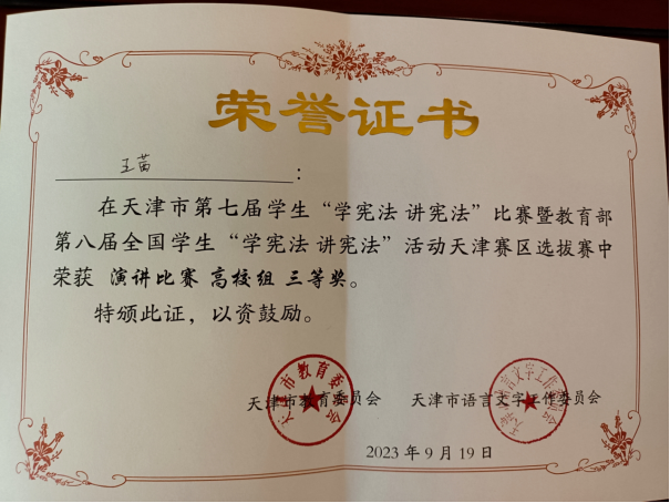 近日,天津市教育委员会公布天津市第七届学生“学宪法 讲宪法”比赛暨教育部第八届全国学生“学宪法 讲宪法”活动天津赛区选拔赛比赛结果,taptap点点经济管理学院2022级公共事业管理学生王茜,荣获演讲比赛高校组三等奖。
