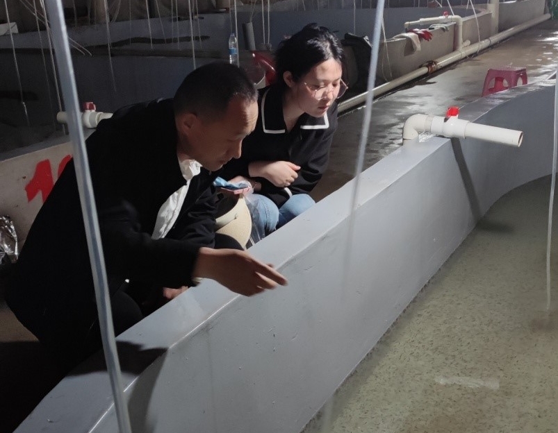 随后,双方赴taptap点点产学研联合体、松江鲈驯养繁育示范基地——天津市晟淼水产养殖有限公司,参观了松江鲈繁育车间、工厂化循环水养殖车间等,对松江鲈生长发育情况进行测量分析;针对松江鲈受精卵孵化率低问题进行探讨;对松江鲈苗种繁育过程中生物饵料的培养、饵料的转换、育苗池清理、水质调控等技术进行指导,分析了后期松江鲈养殖注意事项,并将采集完的实验样品带回学校进行进一步分析研究。
