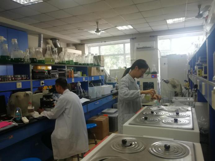 躬勤楼110实验室,张树林教授等课题组,主要研究水产藻类的培养与功能,以及藻毒素对虾的各组织的影响,同学们正在进行藻类的观察和生理生化检测实验。