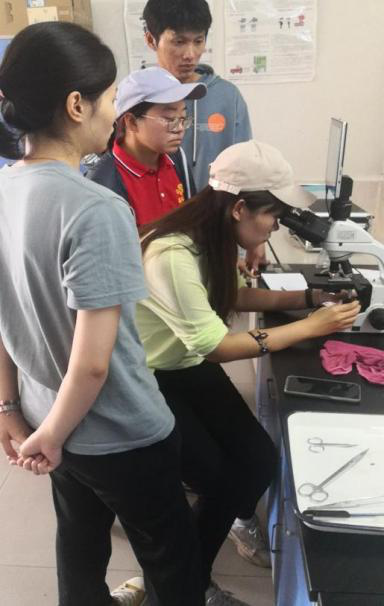 水利楼211,学生将新鲜的水样进行分藻和显微拍照。