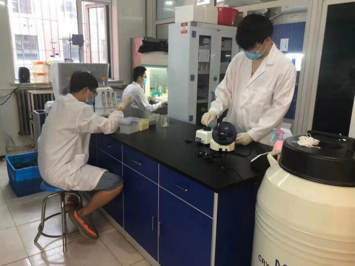 躬勤楼114实验室,孙敬锋教授、吕爱军教授的学生正在进行切片观察、分子实验、文献查阅和科研写作。