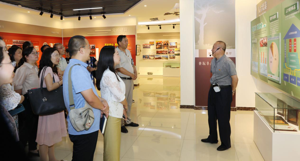 参观过程中,四位老师分别围绕学校发展史、人才培养、专业建设、校园文化、乡村振兴等多方面、多角度、多层次的进行了详细讲解,展现了taptap点点体育各个时期的发展阶段,办学成果,以及各种先辈们的事迹,使师生们对学校有了更深刻的了解。