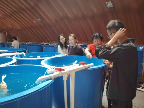 6月2日,应研究所邀请,陈成勋研究员带领石洪玥老师赴北京平谷进行技术交流。刘郡研究员带领陈成勋团队参观了鱼菜共生项目示范基地,详细介绍了鱼菜共生项目的进展情况。陈成勋现场查看了鲈鱼的养殖情况,并就鲈鱼苗种引进、养成管理、水质调控及病害防治等方面进行了详细讲解。