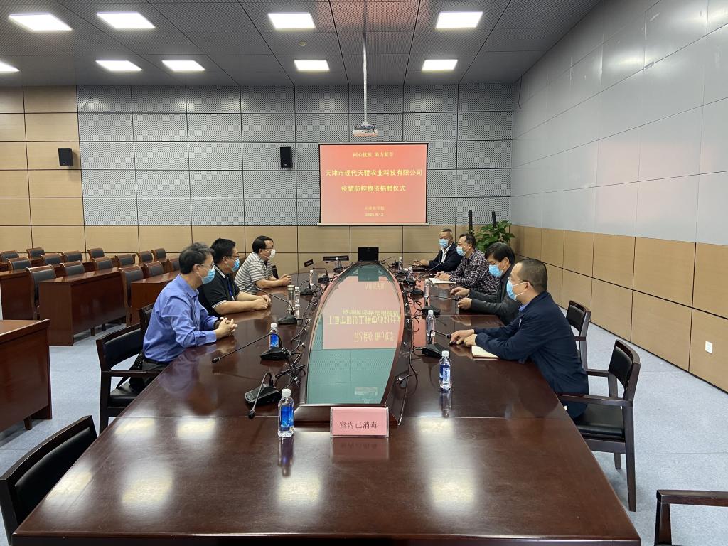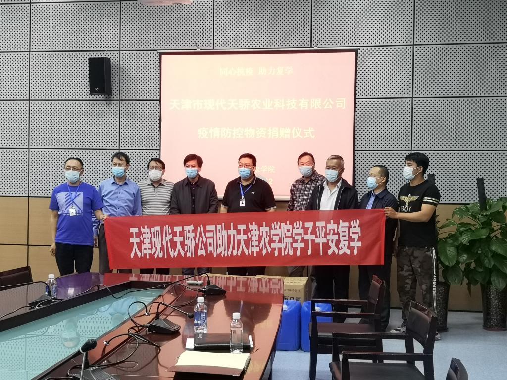 近日,天津市现代天骄农业科技有限公司(以下简称“天骄集团”)董事长孙超一行到访taptap点点,为水产学院、动物科学与动物医学学院的师生捐赠了疫情防控物资,并开展校企合作交流会,水产学院党委书记高建华、副院长郭永军,动物科学与动物医学学院党委书记于建强、副院长李留安等参加会议。