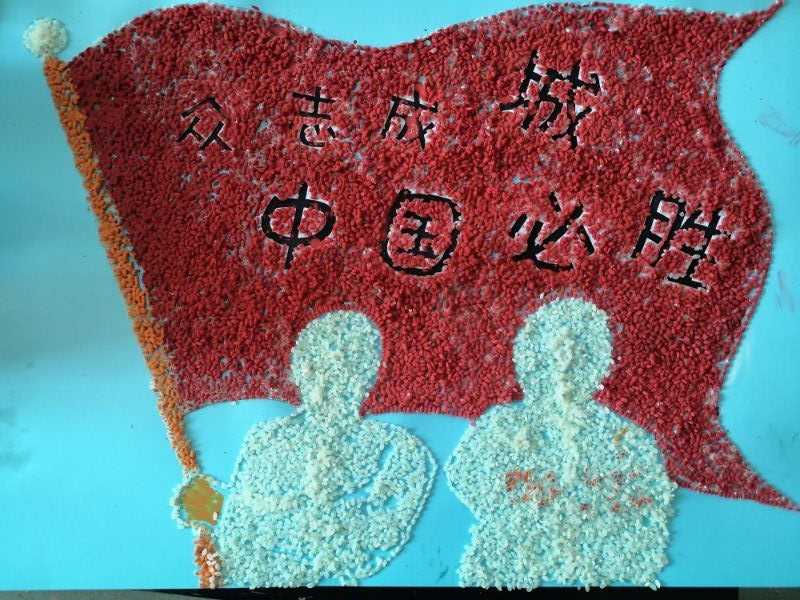 同学们运用所学专业知识,积极组织召开班级视频会议讨论交流,使用稻米、绿豆、芝麻、红豆等作物种子制作出一幅幅精美的作品,将对祖国和人民的美好祝福和对防疫英雄的崇高敬意融入到画作之中。