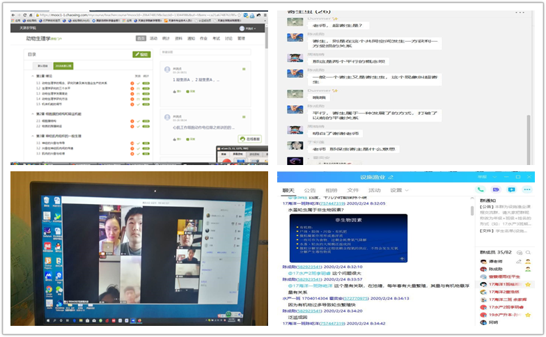 一场突如其来的新冠肺炎疫情给2020年的春季学期带来了巨大的挑战和考验。为积极响应学校防控疫情的工作要求,天津市水产动物营养与饲料学教学团队全体教师利用手头有限的资源条件,攻坚克难力保“云”教学平稳有序、保质保量,“云”科技知识下乡、远程指导养殖户。