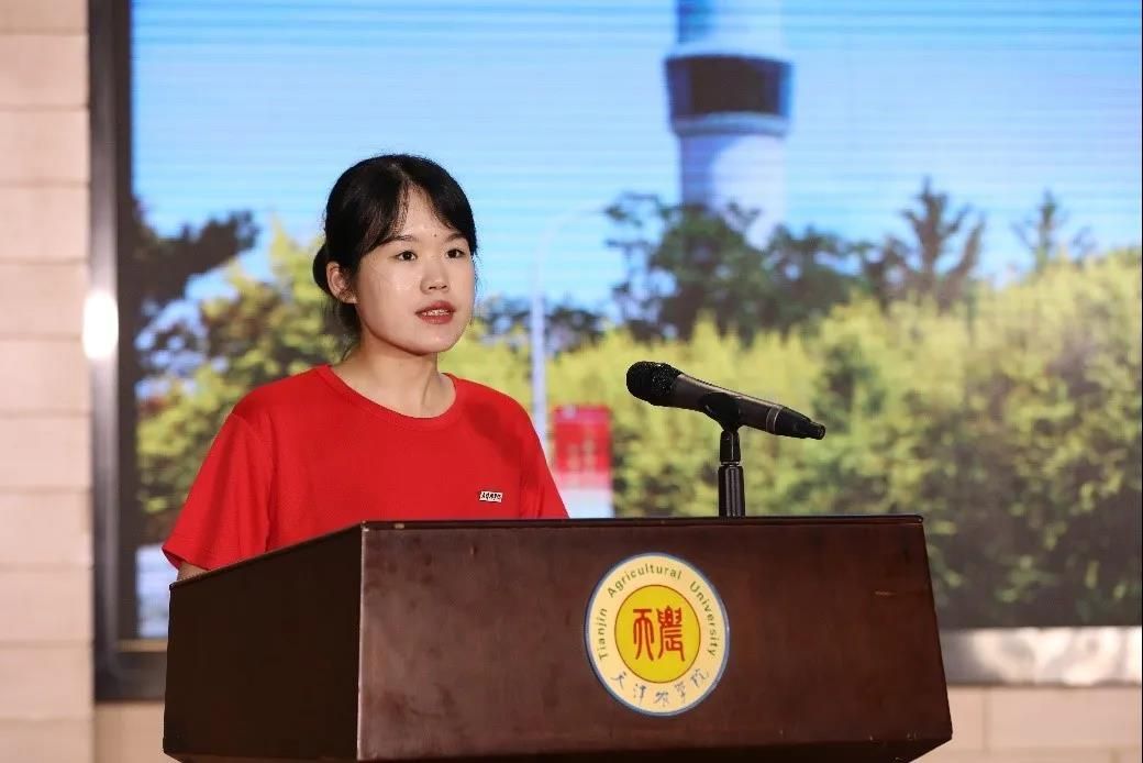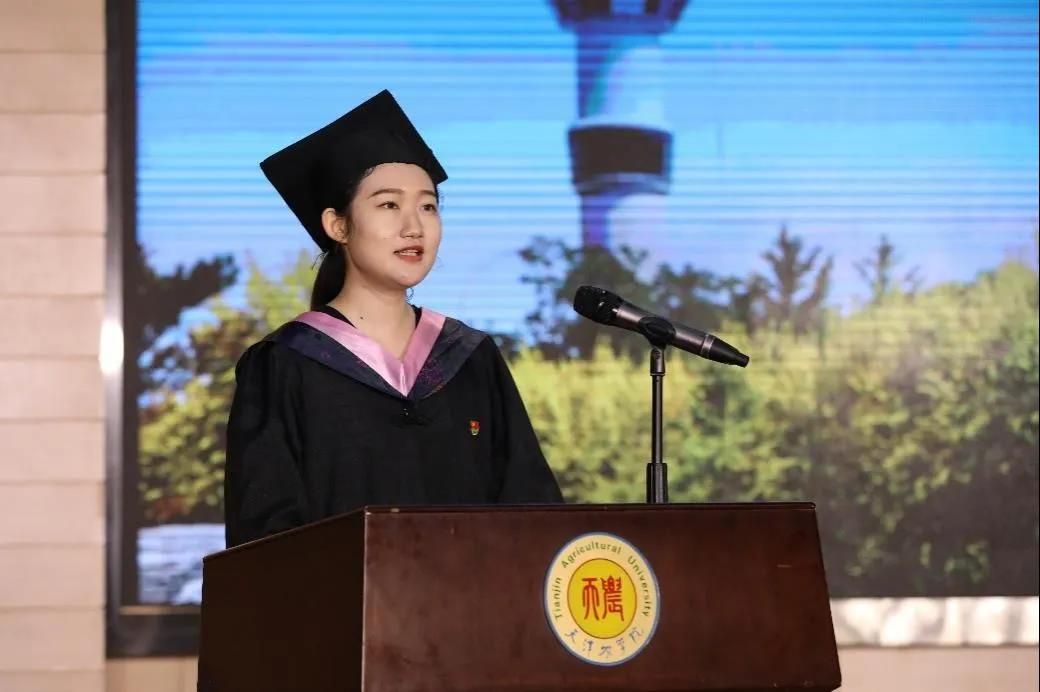 毕业生代表、园艺园林学院邢慧璇在发言中,回顾了在天农的美好时光,感恩母校的精心培育,倡导毕业生谨记天农学子情怀,展现天农学子担当,铭记“敏学切问,躬勤耕稼”的天农校训,“思源”奋进,砥砺前行,奋力谱写无愧于时代的青春华章!