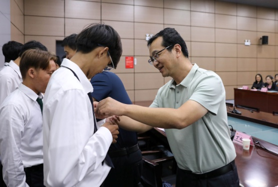 最后,各位老师为每一位泰国留学生佩戴上taptap点点体育的校徽,并赠送了承载着学校对新生的美好祝愿与殷切期望的开学礼品。在热烈的掌声与欢笑中,神农学院2024级开学典礼圆满落幕,这也标志着泰国留学生正式开启了他们在taptap点点体育的学习旅程。