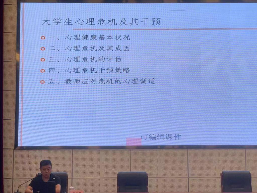 张勇辉主任以《大学生心理危机及其干预》为题,从心理健康基本状况、心理危机及其成因、心理危机的评估、心理危机干预策略及教师应对危机的心理调适等五个方面进行讲解。现场互动环节,张勇辉根据现场提问,从医学和法律层面给与了详尽的解答,为辅导员一线工作提供了专业的指导。