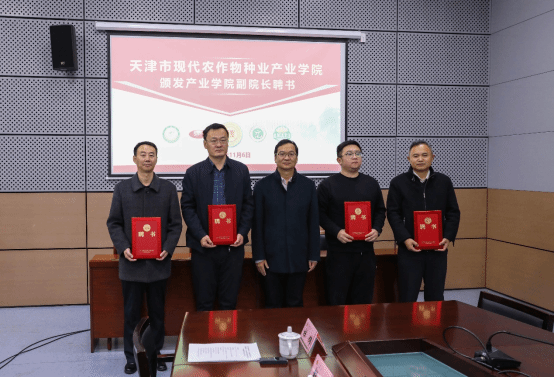 农学与资源环境学院、园艺园林学院和天津市南澳种子有限公司、天津市桑田梓地农业科技有限公司共同签署了共建天津市现代农作物种业产业学院协议、全面战略合作框架协议、设立人才发展基金三项协议。金危危为天津市现代农作物种业产业学院副院长颁发聘书。