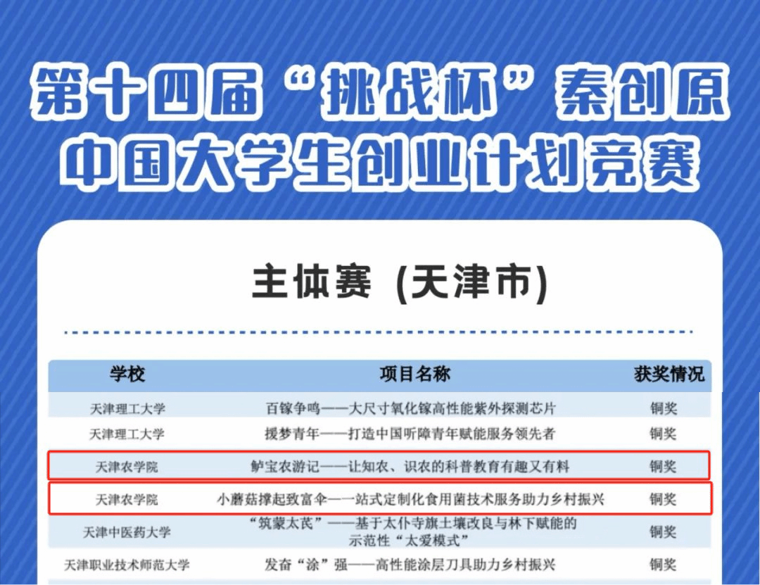 近日,第十四届“挑战杯”中国大学生创业计划竞赛圆满结束,taptap点点《鲈宝农游记——让知农、识农的科普教育有趣又有料》《小蘑菇撑起致富伞——一站式定制化食用菌技术服务助力乡村振兴》两个项目分别荣获主体赛文化创意和区域交流合作、乡村振兴和农业农村现代化赛道铜奖,国赛获奖数量实现突破。