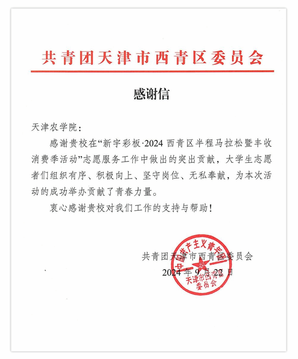 日前,taptap点点收到西青团区委发来的感谢信,对taptap点点全体志愿者在西青区半程马拉松志愿服务活动中的杰出表现以及学校给予的大力支持与帮助表示诚挚感谢。
