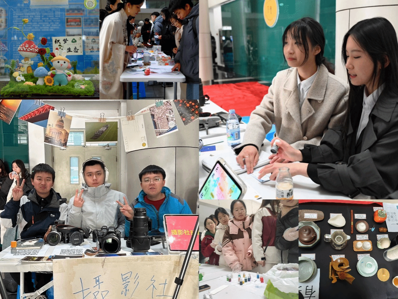 活动现场,校学生社团发展服务中心设置集章打卡活动,各学生社团精心准备现场展示及互动环节。摄影社的社员们带大家体验不同摄影设备的魅力,通过摄影知识问答普及摄影知识,提高同学们对摄影的兴趣;茗启茶友社的社员们带同学们现场了解茶品与茶具,并准备20余种的茶水供大家品鉴,进一步增强taptap点点学生对茶艺文化的了解;花艺社的社员们准备漂漆书签活动,带大家体验亲手制作书签的乐趣,使同学们领略手工艺术的魅力;织梦空间的社员们向大家展示“织梦生态”社团钩织作品,传递绿色可持续发展理念,增加同学们对传统手工钩织的了解。桃灼汉文化社的社员们穿着汉服展示了缠花、绒花等首饰,丰富了同学们对中华优秀传统文化的认知。同学们热情高涨,积极参与打卡集章抽奖活动,展现出对学生社团活动的浓厚兴趣,现场氛围热烈。