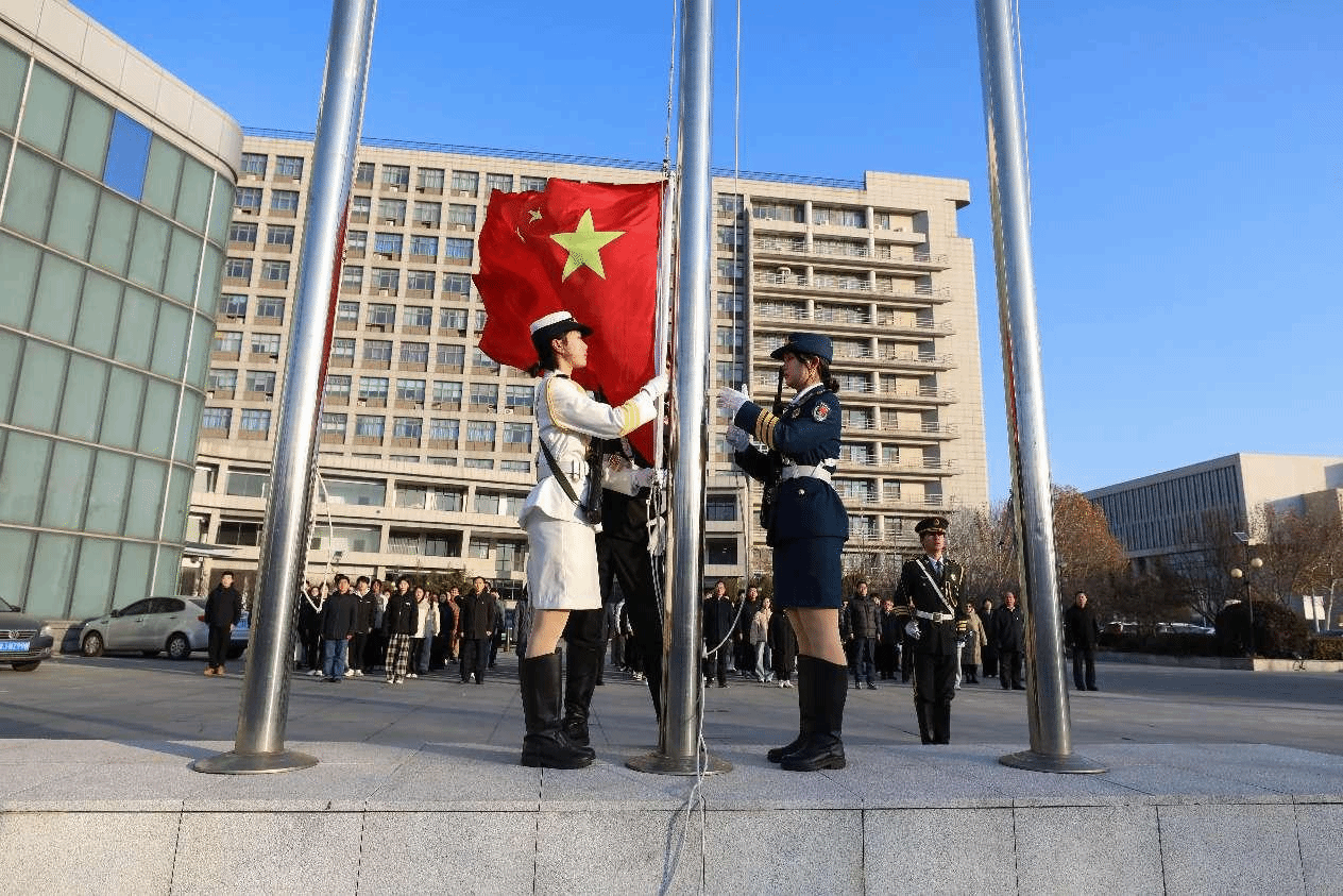 活动现场,师生全体肃立,国旗护卫队队员迈着铿锵有力的步伐走向升旗台,五星红旗缓缓升起,全体师生高唱《中华人民共和国国歌》,随后,全场默哀一分钟。