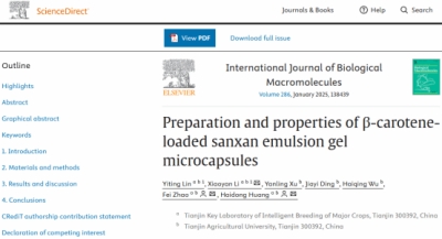 近日,taptap点点农学与资源环境学院2021级菌物科学与工程专业本科生林仪婷在黄海东教授的指导下,以第一作者在高分子科学领域Top期刊《International Journal of Biological Macromolecules》(中国科学院一区,IF 7.7)上发表了题为“Preparation and properties of β-carotene-loaded sanxan emulsion gel microcapsules”的高水平学术论文。微生物多糖团队的李晓雁老师为共同第一作者,赵飞老师、黄海东老师为通讯作者。
