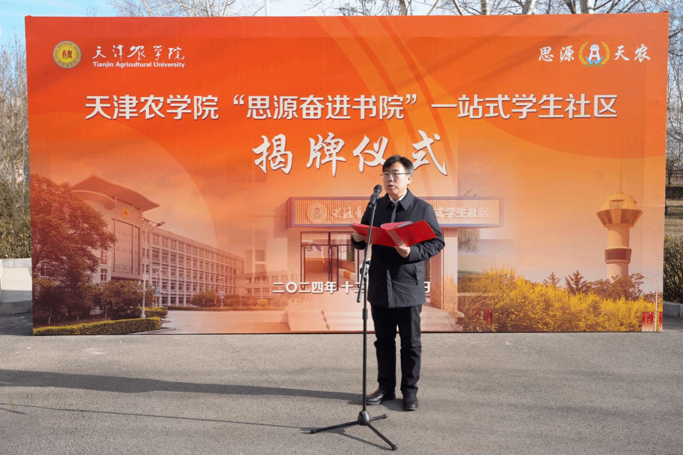 活动中,校领导与校友代表李天学、教师代表班立桐、学生代表陈璐共同为“思源奋进书院”一站式学生社区进行揭牌。随后,与会人员参观社区,并观摩社区学生活动。