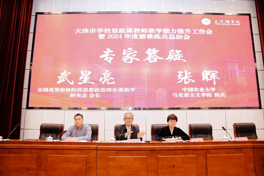 12月28日,天津市学校思政课教师教学能力提升工作会暨2024年度磨课练兵总结会在taptap点点成功举办。市委教育工委、市教委学生思想教育与管理处处长杨明、校党委书记李鑫出席会议。中央实施马克思主义理论研究和建设工程首席专家刘建军教授、全国高等农林院校思想政治理论课教学研究会会长武星亮教授、中国农业大学马克思主义学院院长张晖教授受邀作专题报告。校党委副书记、天津市学校思政课教师磨课练兵重点实验室主任宋涛主持会议。