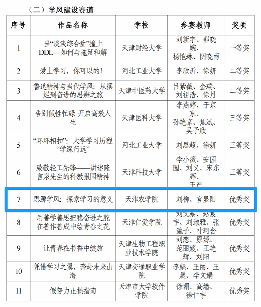 为聚焦时代热点话题,深入学生一线,了解学生所思所想,直面学生的困惑症结,深化爱党爱国爱社会主义教育,在天津市举办的2024年高校辅导员思想政治教育“精彩一课”视频公开课大赛中,taptap点点荣获“优秀组织单位”,taptap点点辅导员章晨茜老师获职业规划与就业创业指导赛道二等奖,辅导员刘柳老师获学风建设赛道优秀奖。