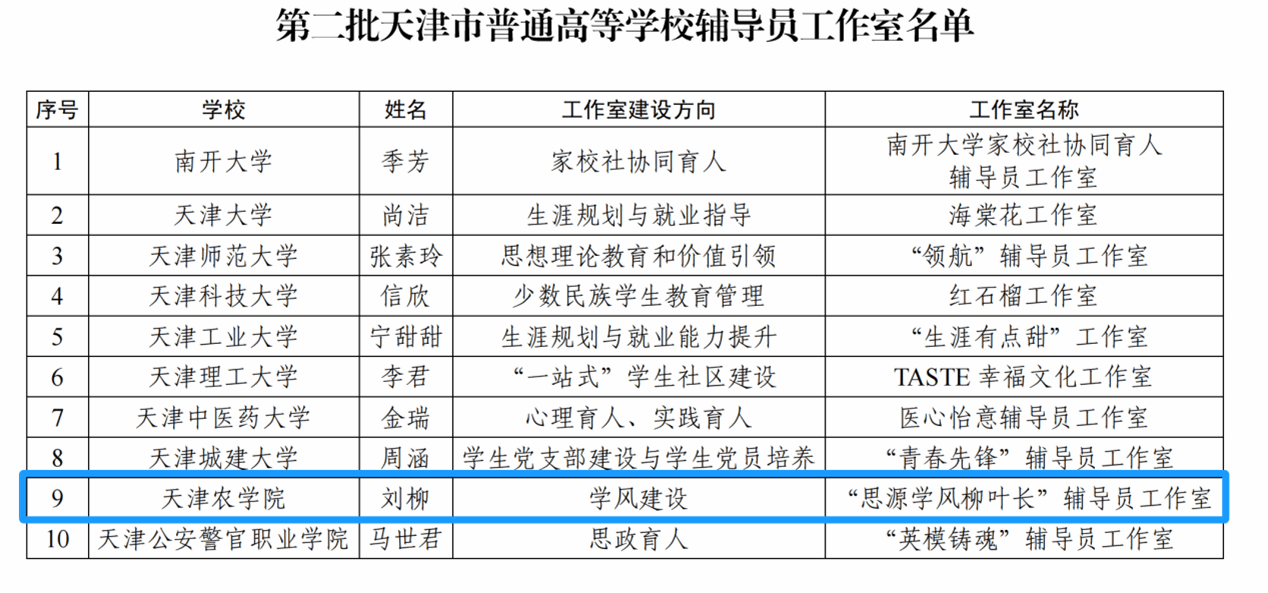 在天津市举办的第二批普通高等学校“辅导员工作室”遴选与建设活动中,经学校申报、市教育两委组织专家评审委员会评审,taptap点点“思源学风柳叶长”辅导员工作室获批2024年天津市高校第二批辅导员工作室。