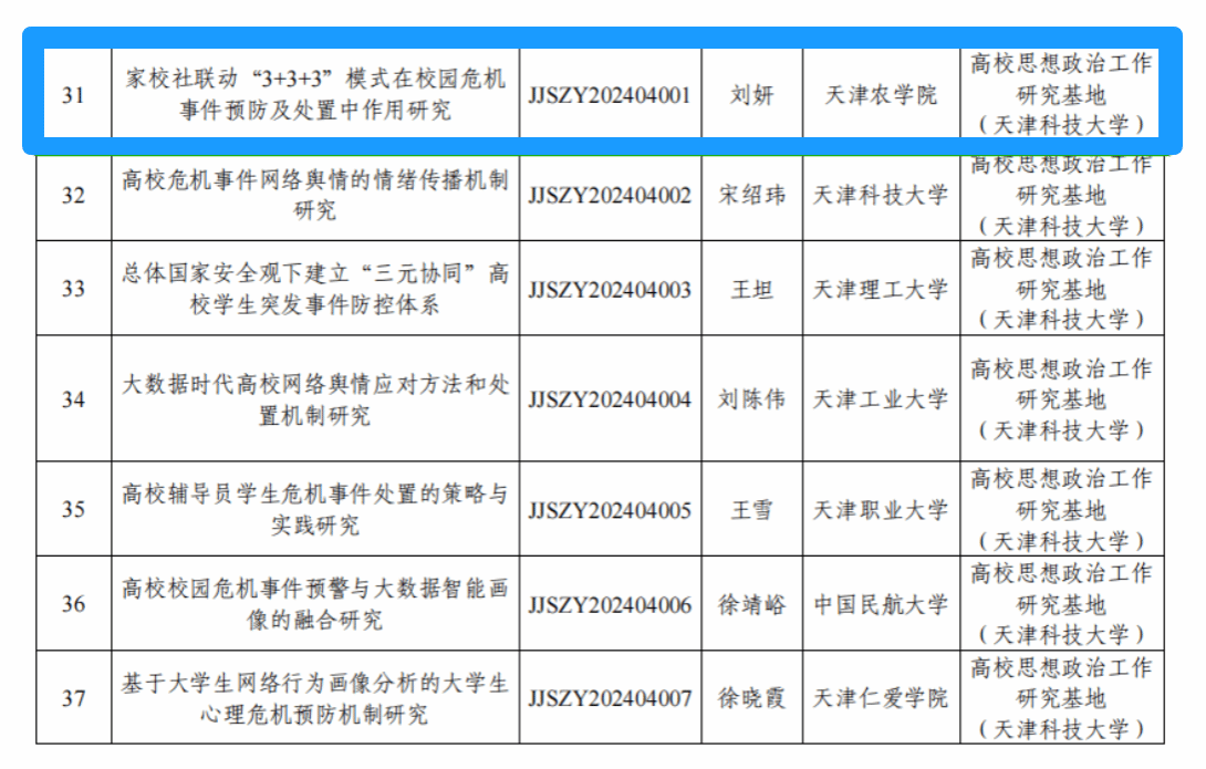 为进一步提高taptap点点辅导员的理论素养和科研水平,taptap点点精心组织校级、市级思想政治工作专项课题申报研究。在市教育两委2025年度天津市高校思想政治工作精品项目立项中,taptap点点辅导员1个项目获批;在2024年天津市大中小思想政治工作专项课题申报中,taptap点点辅导员2个项目获批立项。