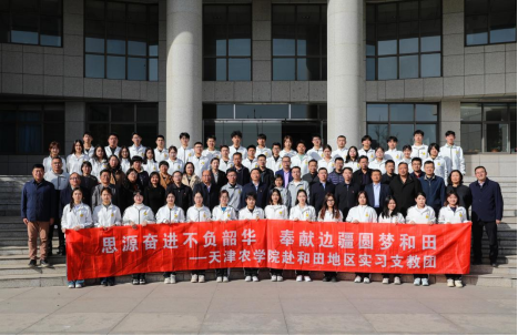 宋涛代表学校向支教团全体师生表达了问候和祝愿。他说,学校党委和行政高度重视支教工作,给予全力支持,对支教团的师生充满关爱,寄予期盼,希望同学们通过支教经历,思想上锻炼自己,学习上充实自己,生活上照顾自己,多方面都有收获、有成长。在植树节之际,希望支教团成员种下三粒种子。一是种下铸牢中华民族共同体意识的种子。要树牢中华民族共同体意识,做党的民族政策的传播者和实践者,为促进民族团结,共同发展贡献力量。二是种下自树树人的种子。要按照人民教师的标准严格要求自己,遵守师德规范,树人更树己,倾心教育,精心育人。三是种下思源奋进的种子。自觉将支教与实践思源奋进文化相结合,增强爱党爱国爱农爱校情怀,积极展示天农学子朝气蓬勃,奋进向上的精神面貌,为天农争光、为天津争光,为青春争光。