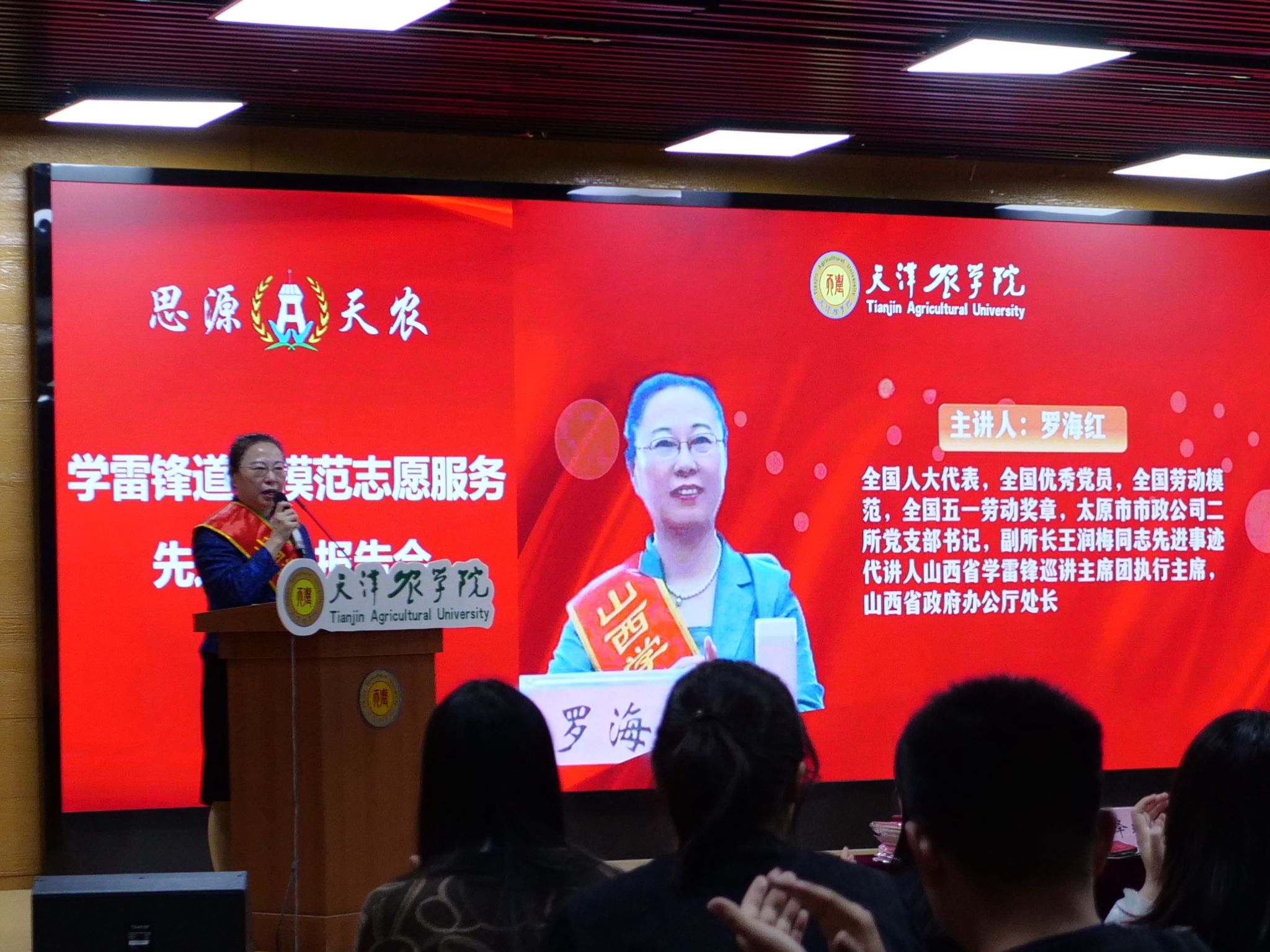 山西省学雷锋巡讲主席团执行主席、山西省五一劳动奖章获得者、山西省政府办公厅罗海红处长以《雷锋精神永传承,爱岗敬业献爱心》为题讲述了全国人大代表,全国优秀党员,全国劳动模范,太原市政建设管理中心二所党总支书记,副所长王润梅的事迹,王润梅干一行、爱一行、钻一行的敬业精神感染着每一位听众,罗海红结合taptap点点“思源·奋进”文化育人任务目标,号召全体同学要厚植“爱党 爱国 爱农 爱校”情怀,并欢迎同学们到山西去,真正践行“把论文写在祖国大地上”的使命,以“向下扎根”的服务意识诠释青春本色。