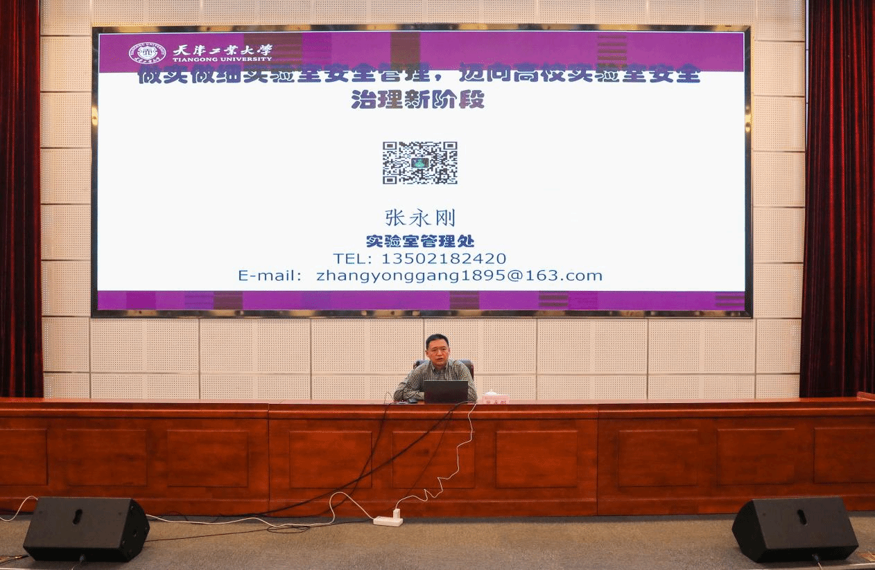 开幕式结束后,天津工业大学安全专家张永刚教授为师生带来了一场精彩的实验室安全专题讲座。他结合多年的科研和安全管理经验,从实验室安全法律法规、安全管理制度、常见安全隐患及应对措施等方面进行了详细讲解,并通过大量真实案例,深入浅出地分析了实验室事故的成因和危害,强调了规范操作和安全意识的重要性。