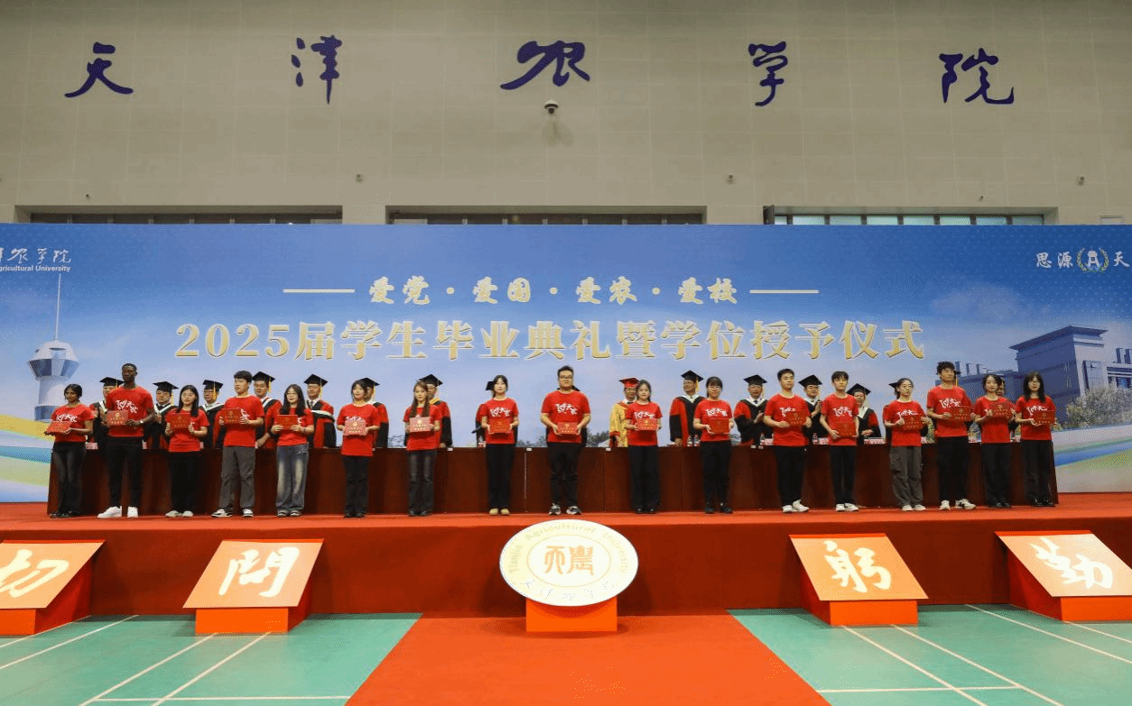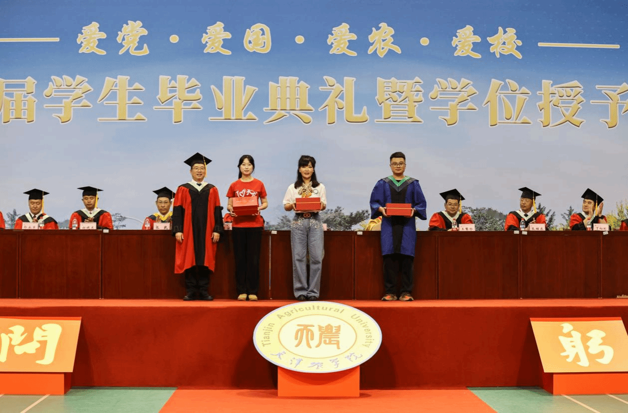 李鑫为毕业生代表赠送毕业纪念品,这份承载着母校深情的礼物,不仅是对求学时光的珍贵纪念,更是对未来的美好期许。每一件纪念品都镌刻着天农人的精神印记,寄托着师长们"今日你以母校为荣,明日母校以你为傲"的殷切祝愿。毕业生们纷纷表示,学校为我们精心打造的专属毕业纪念品,饱含着母校的眷恋和深情。这“一碗一筷”将农业使命、津派特色和母校情怀熔铸于方寸之间,教导我们要时刻牢记粮食安全“国之大者”,勇担强农兴农重任,感恩学校教育培养,在未来人生征途中秉承天农精神,脚踏实地,奋勇争先,为学校增光添彩!