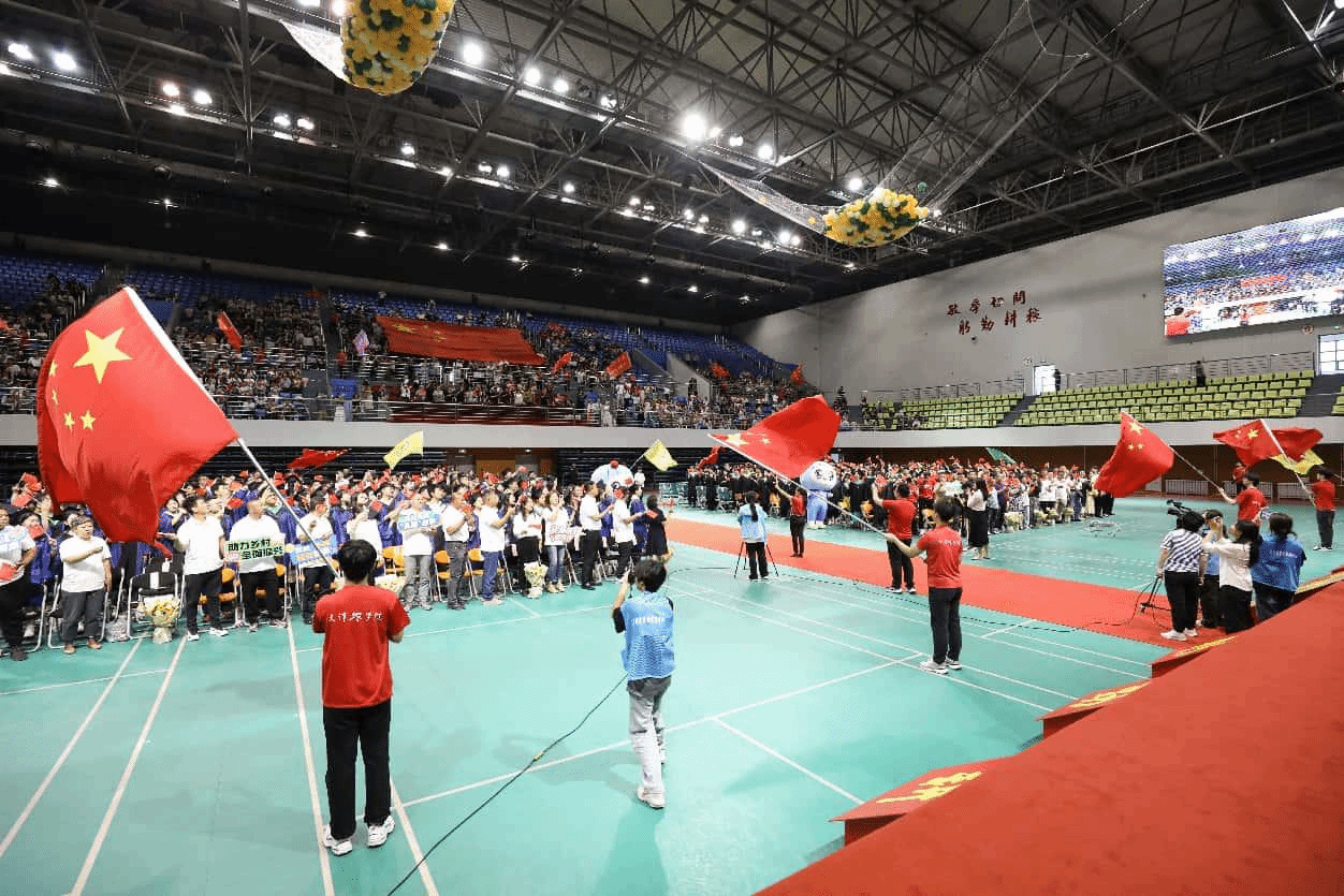 仪式在激昂的国歌声中启幕,校旗随校歌冉冉入场,彰显奋进之志。