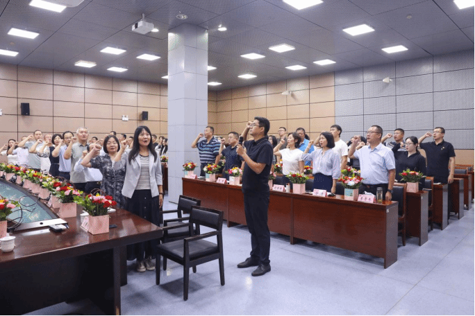 在天农“十大新锐”获得者刘建波老师的领誓下,全体教师庄严宣誓,重温人民教师誓词,坚定从教初心,对教育事业作出神圣承诺。