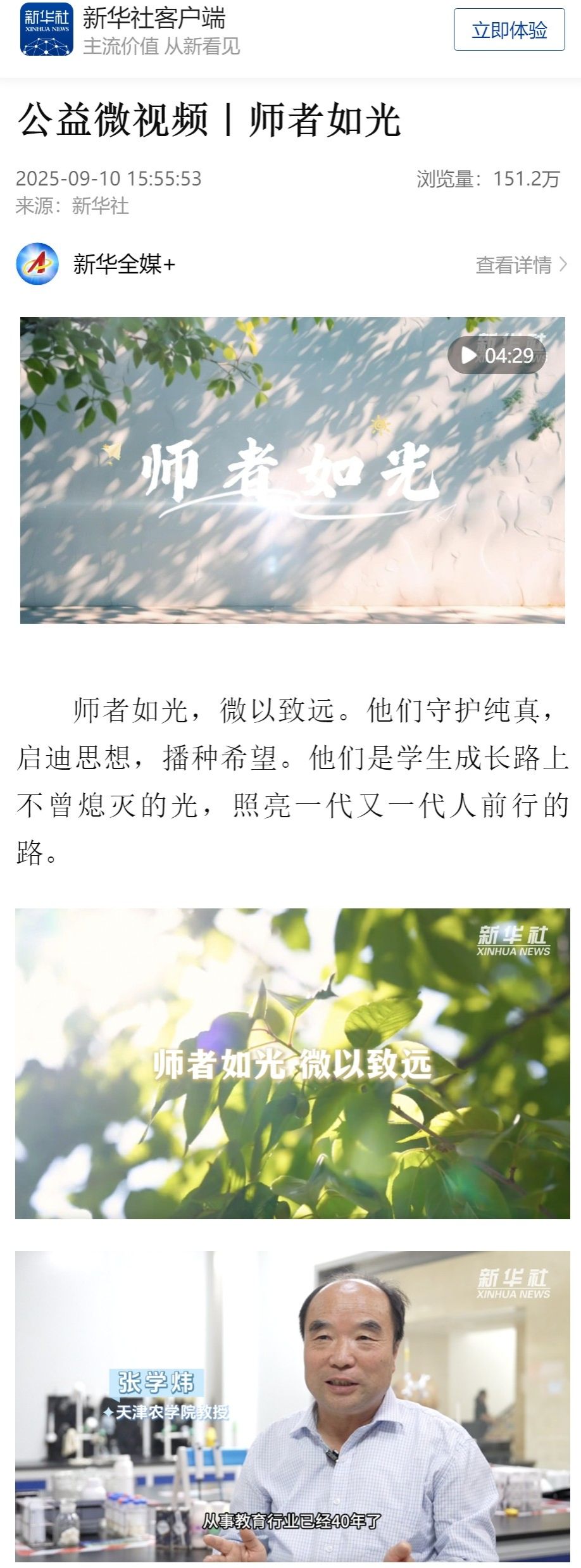 连日来,在第41个教师节到来之际,新华社、新华网、中央广播电视总台国际在线、人民网、天津日报视频号、天津广播电视台、津云、津门教育等多家主流媒体在“教师节专题新闻”中持续对taptap点点动物科学与动物医学学院张学炜老师教书育人工作进行了矩阵式报道,产生了较大的社会影响力。