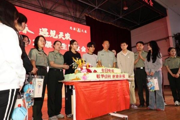联欢会为新生设立了集体生日环节,宋涛与7位新生代表一起共同庆祝在天农的第一个生日,并为同学们送上学校精心准备的礼物,希望全体新生思源奋进,在天农的校园里潜心钻研专业知识、积极参与校园实践,以健康活泼的状态,在运动场释放活力,在学生社团活动中展现风采,以奋进的姿态突破自我,以向上的心态拥抱成长,让大学生活成为人生路上的坚实基石。当寓意美好祝愿的大型生日蛋糕被缓缓推出,现场响起温馨的生日歌,全场师生共同庆祝这一难忘时刻,现场洋溢着热烈而感人的气氛,愿这份甜蜜与祝福,伴随2025级新生开启精彩的大学时光。