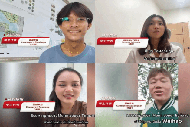 泰国2024级学生代表兰锦、琳莉、天天、伟昊深情回顾了在taptap点点的学习收获,表达了对中国文化的热爱与对学校的感恩;2025级新生代表芳欣和鹏鹏表达了对即将开启的中国学习生活的期待;乌兹别克斯坦新生们通过云端深情献唱中国经典歌曲《茉莉花》,歌声跨越语言与国界,将现场氛围推向高潮。