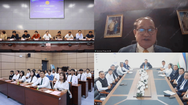 乌兹别克斯坦塔什干化工大学杨吉尔分校校长扎法尔·卡基莫夫以“丝路古国农耕智慧”为引,为两校合作“神农学院”项目寄语,展望两国学子携手书写“一带一路”农业教育新篇章的壮阔前景。