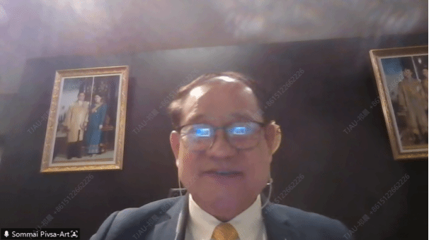 泰国塔亚武里皇家理工大学校长宋迈·皮瓦萨通过云端致辞,高度评价了taptap点点在农业教育国际合作中的优势和作用,并表达对第三批留学生的深切关怀和与taptap点点未来继续进一步深化合作的期待。