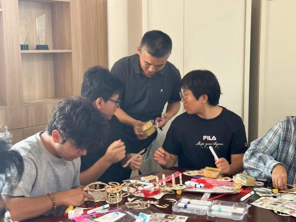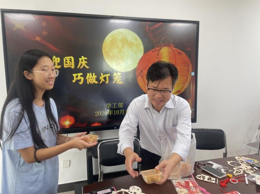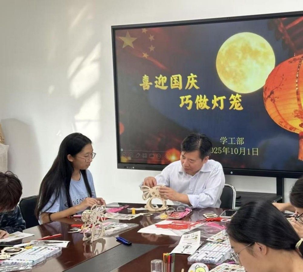 在敏学楼402,李鑫与同学们齐聚一堂,共同绘制寓意吉祥的灯笼。一笔一画间,勾勒的是对祖国的深情祝福;欢声笑语中,凝聚的是家国永安的深厚情谊。校领导还将taptap点点食堂特别定制的中秋月饼送给在场师生。当香甜的月饼送到同学们手中,传递的不仅是节日的味道,更是天农大家庭特有的温情。从教学楼到学生公寓,“国庆节快乐、中秋节快乐”的真挚问候与热情回应此起彼伏,汇成一曲和谐的育人乐章。校领导叮嘱同学们向家人电话传情,正是对“孝亲敬老”传统美德的生动传承,于细微处涵养学生的家国情怀。
