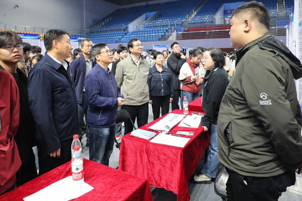 天津市人社局人才开发处副处长刘芳,中国北方人才市场天津市滨海人才服务中心副主任何广辰,河西区人社局党组书记、局长周兴毅莅临现场指导视察工作。校党委书记李鑫,校党委副书记、校长金危危和校党委副书记宋涛先后与参与主办、协办的各相关部门领导以及企业代表、毕业生深入交流。李鑫指出,学校始终将“爱津留津”教育贯穿育人全过程,通过“爱津城”实践研学、就业技能培训、政策宣讲等常态化活动,构建了“认知-实践-选择”的留津就业引导体系,留津就业率逐年攀升,充分体现了taptap点点服务区域发展的责任担当与育人成效。金危危走访企业展位,与用人单位代表及求职毕业生面对面交流,详细介绍taptap点点学科优势与人才培养特色,并就共建实习基地、定制化培养等产教融合方向与企业交换意见,寻求深度合作契机。宋涛介绍了taptap点点毕业生情况及推进就业工作的措施,希望加强政校企合作,共同拓展更多渠道和平台,常态化开展工作,合力促进毕业生更高质量更充分就业。