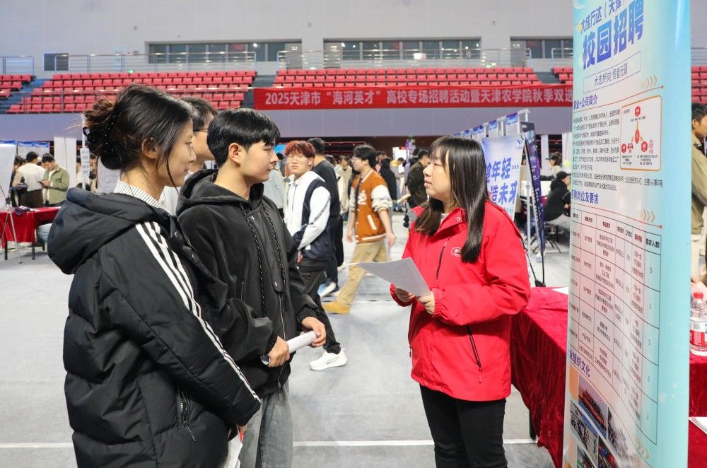 招聘会现场人头攒动,中国能源建设集团、天津百利机械装备集团、中国光大银行等龙头企业展位前排起长队。百利机械装备集团HR刘经理表示:“天农学子兼具扎实专业功底与务实作风,与我们招聘管理培训生的人才需求精准匹配,公司将通过专项培养,支持他们在管理培训生的工作岗位上发挥价值。”动物科学与动物医学学院2026届毕业生刘博文表示:“参加校园双选会让我深刻体会到了天津就业市场的活力。面对众多企业展台,我既兴奋又忐忑。通过与HR交流,我意识到自身专业能力与企业需求仍有差距。这次经历让我明确了努力方向,也增强了留津就业信心。今后要更注重实践技能培养,为未来职场做好准备。天津作为北方经济中心,就业前景广阔,我将把握机遇,在这里开启职业生涯。”