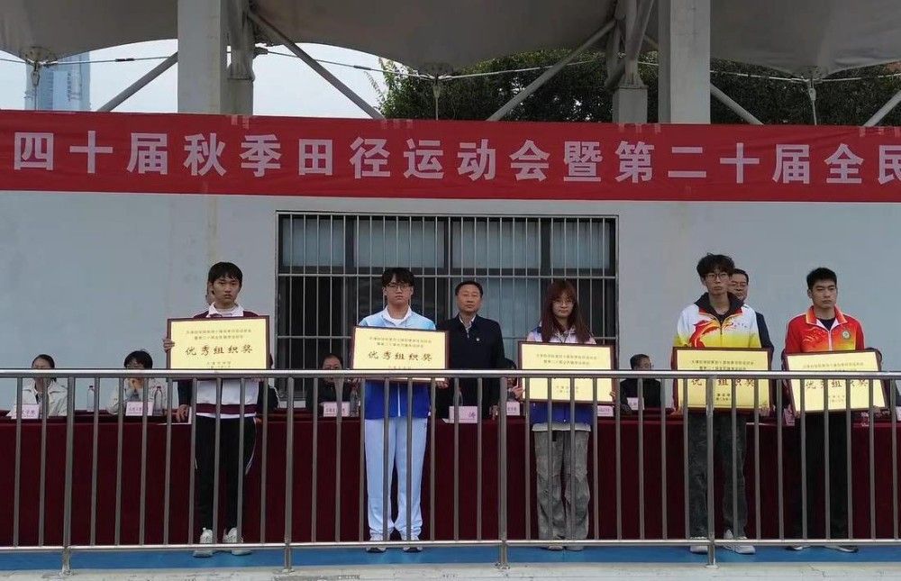 校领导为获得团体总分前六名(两学院并列第五)和获得优秀组织奖的学院颁奖。