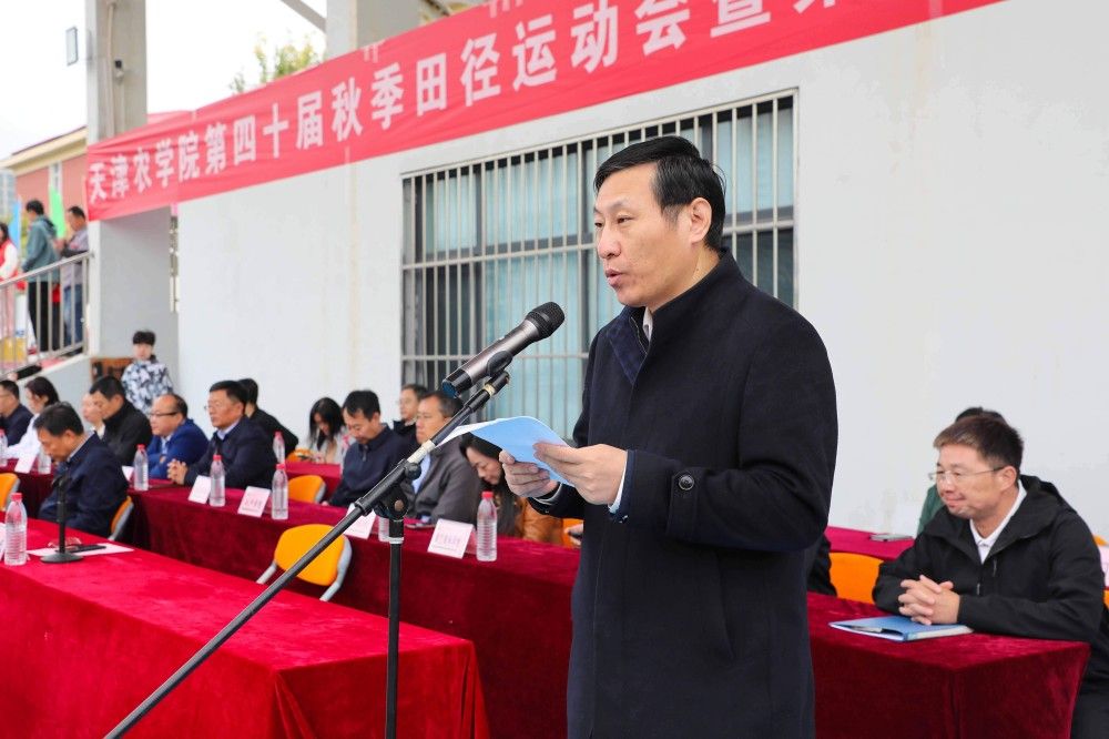 张民致开幕词时讲到,高校体育是立德树人的重要环节,是服务体育强国建设、培育时代新人的实践路径。当前学校正处筹备建校50周年的新历史节点,希望广大师生延续天农体育育人优良传统,树立追求真理、创造新知的志向,文明精神、野蛮体魄,以青春活力与奋斗激情,谱写学校改革发展新篇章,为体育强国、健康中国建设贡献青春力量。