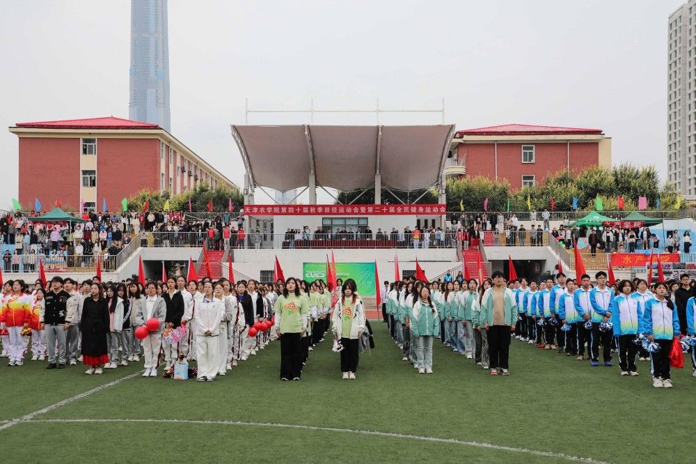 由全校各学院学生、裁判员代表和校田径运动队队员组成的方阵依次入场,他们精神昂扬、步伐铿锵,充满学科特色的风采展示,彰显了天农师生思源奋进的精神面貌。
