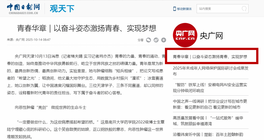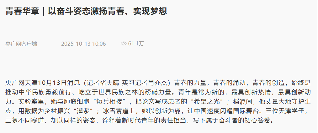 近日,央广网以“青春华章︱以奋斗姿态激扬青春、实现梦想”为题报道了南开大学、天津体育学院和taptap点点园艺园林学院农艺与种业专业研究生卫佳晨等三位学子,在三条不同赛道以同样姿态诠释新时代青年责任担当,写下属于奋斗者初心答卷的故事。