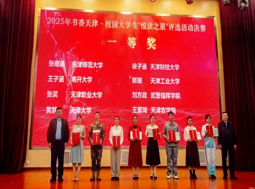 此次活动举办之际,恰逢国家新闻出版署收到《国务院关于同意设立“全民阅读活动周”的批复》,批复中明确,自2026年起,将每年4月的第四周设立为“全民阅读活动周”,在这一推动全民阅读、建设书香社会的国家层面倡议背景下,本届书香天津•校园大学生“悦读之星”评选活动更显意义深远。经过各高校的层层选拔,来自全市52所本科院校、军事院校及部分独立学院、高职院校的52名选手入围决赛。通过线上竞答、阅读素养与现场演讲的综合评定,最终角逐出一等奖8名、二等奖16名、三等奖28名。