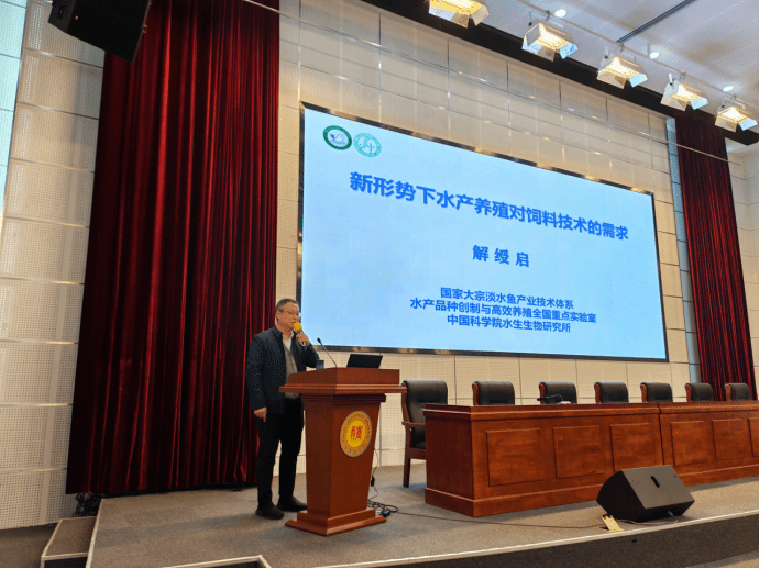 报告会上,解绶启以《新形势下水产养殖对饲料技术的需求》为题展开报告,系统剖析了当前水产饲料行业面临的机遇与挑战,分享了在水产营养与饲料技术领域的最新研究成果,为推动水产养殖绿色高效发展提供关键思路。