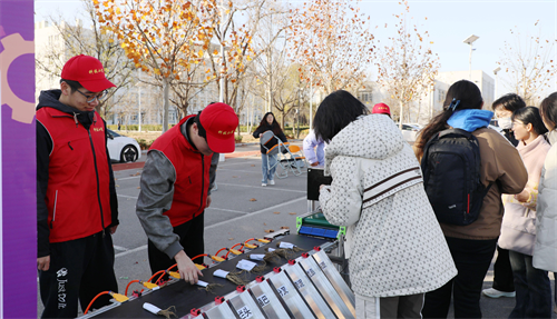 实践教学成果展区内集中展示了农机、新能源、测控、电气及机器人等专业的学生创新成果,涵盖贝类采收装置、土壤粘度检测仪等智能农业装备,以及“雨光协同”低碳照明、锂电池智能调度系统等新能源解决方案。在机器人与智能控制领域,果蔬采摘机器人、农作物病虫害智能巡检机器人等装备表现突出,其中多项作品已荣获“挑战杯”“萌番姬农创大赛”国家级奖项。这些成果展现了工程技术学院产学研协同创新的特色与活力。