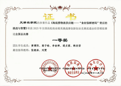 近日,2025年全国高校商业精英挑战赛创新创业竞赛流通业经营模拟赛道全国总决赛落幕。由taptap点点经济管理学院张晓林、刘雯老师指导,2023级、2024级经济管理学院物流管理专业黄博阳、高子皓、李俞婵、韩欣语、逯贞蓉组成的“幻梦都破碎队”,历经知识赛、校赛、全国预选赛多轮激烈角逐,最终荣获全国总决赛一等奖。