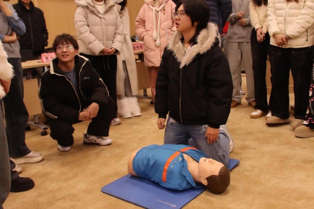 培训分为理论和实操两部分。市红十字会讲师结合校园生活、户外运动及生活中的常见突发场景进行了系统的理论讲解,内容涵盖急救原则、急救黄金时间、心肺复苏操作指征、气道异物梗阻急救流程等知识。讲师还通过典型急救案例剖析,让师生深刻认识到及时规范施救的重要性。
