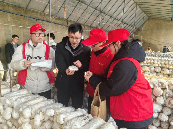 随后,师生一行前往中亿建良合作社,针对当地主导的白灵菇产业及香菇种植需求,师生团队聚焦出菇环节,破解菇农在杂菌防控、菌丝生长不均等方面的难题。合作社理事长戴建良介绍,团队指导贴合生产实际,有效弥补了种植户在精细化管理上的短板,为“中亿白灵”品牌提质提供了技术支撑。