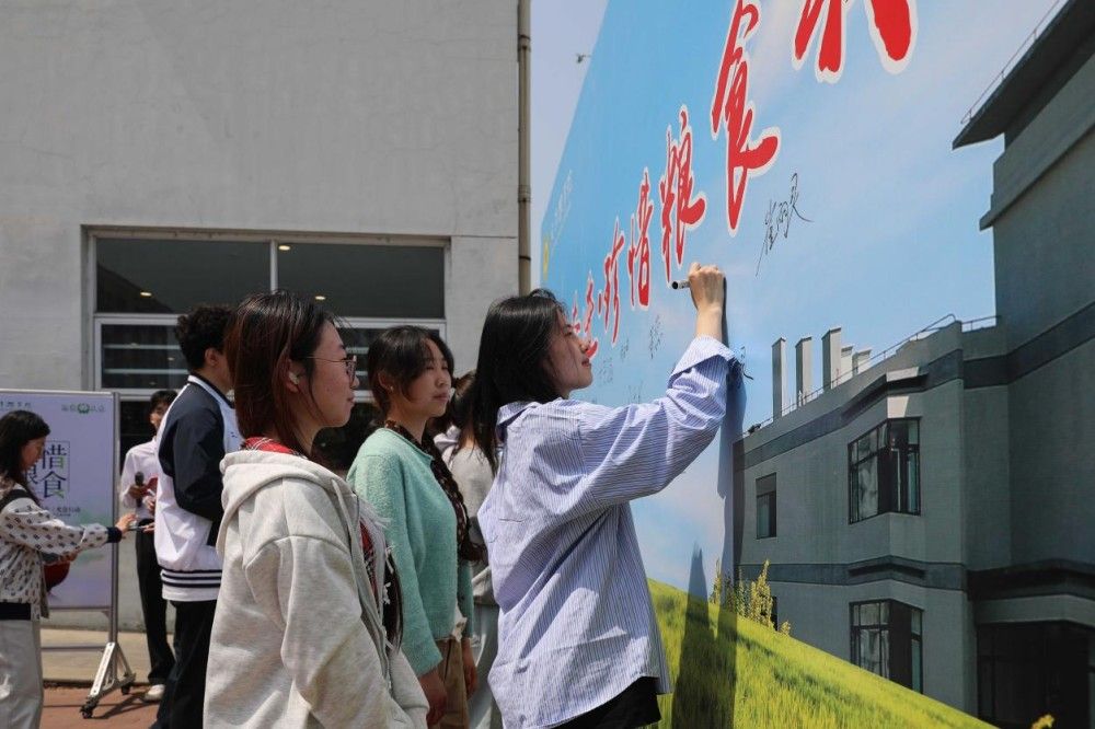 师生代表共同在“思源奋进·珍惜粮食我示范”主题展板上郑重签名。一笔一划,不仅是名字的书写,更是对粮食的敬畏、对家国的承诺。师生代表以签名为约,共同守护粮食安全,争做节约粮食、倡导粮食安全的宣传者、践行者和示范者。签名活动结束后,师生代表参观“思源奋进·珍惜粮食我示范”主题图片展。