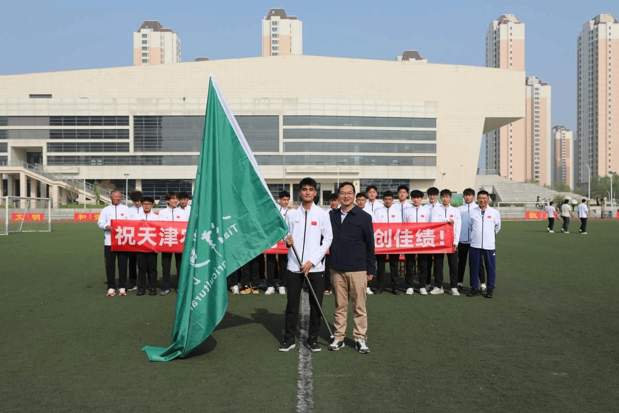 仪式上,金危危代表学校向即将出征的队员、教练员致以诚挚祝愿,向辛勤付出的教练团队及关心支持学校体育事业的师生表示衷心感谢。他指出,球队一路过关斩将挺进全国总决赛,充分展现了天农学子昂扬向上、团结奋进的青春风采,践行了学校体育育人的初心使命,为全校师生树立了榜样。希望大家坚定团队信念、凝心聚力、默契配合,发扬天农学子勤勉务实、敢闯敢拼的优良作风;恪守体育道德,尊重对手、尊重裁判、尊重观众,全面展现天农青年良好素养与精神风貌。他表示,学校是球队最坚强的后盾,全体师生是最忠实的粉丝,期待队员们在全国赛场勇创佳绩、载誉而归,用拼搏书写青春华章,用实力为校增光添彩。